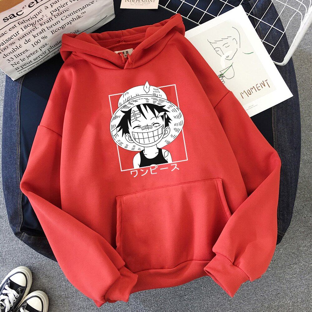 - بلوفر بتصميم لوفي قبعة القش لمحبي ون بيس
