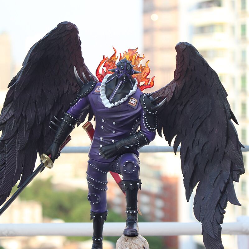 كينغ هو القائد المساعد ليونكو كايدو، وينتمي إلى سلالة نادرة تُعرف بـ”عرق اللوناريان” أو “عرق الملائكة”، مما يمنحه مكانة فريدة في عالم ون بيس. كما أنه خاض معركة شرسة ضد زورو، نائب لوفي، وانتهت بهزيمته بصعوبة بالغة. كينغ يُعتبر حاليًا أقوى نائب ليونكو في القصة، متفوقًا على كاتاكوري بقوته وكاريزمته، مما يجعل اقتناء مجسمه إضافة رائعة لمجموعتك.